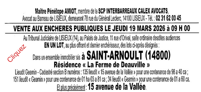 - vous devez contacter un avocat au Barreau de Lisieux qui peut seul porter les enchères uniquement pour votre compte.